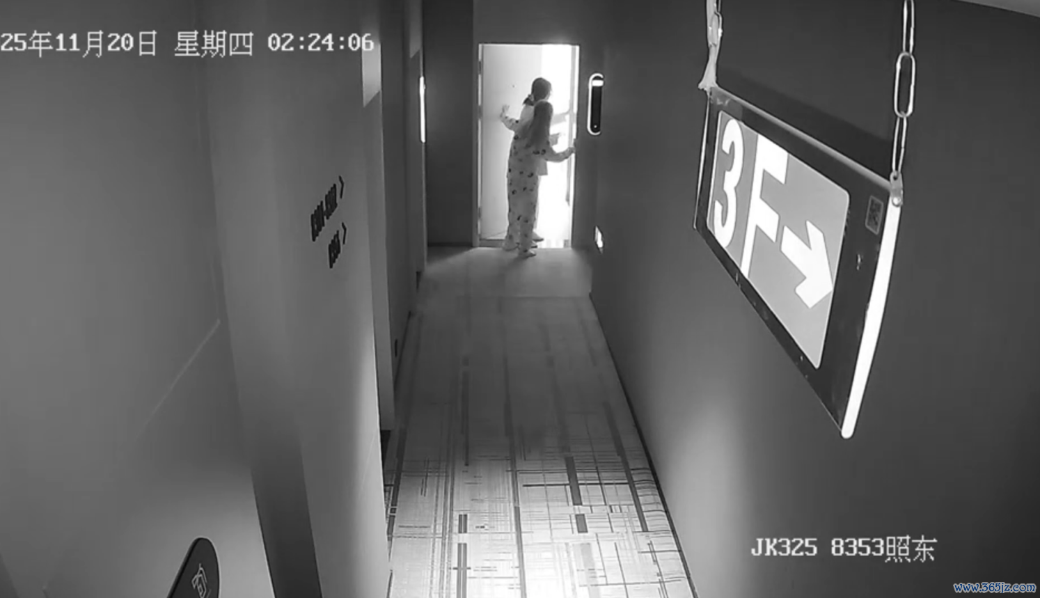 “那时我在前台值班,凌晨2点半傍边,短暂接到物业责任主说念主员电话,说3层走廊特殊的一间客房烟感探伤器报警。”11月26日,记者来到事发旅店,旅店责任主说念主员小陈回忆了那时的情形,“我赶到3层的时候,房间内两名女士也曾逃了出来并关闭了房门,那时房间内喷淋的水从门缝流到了走廊。”